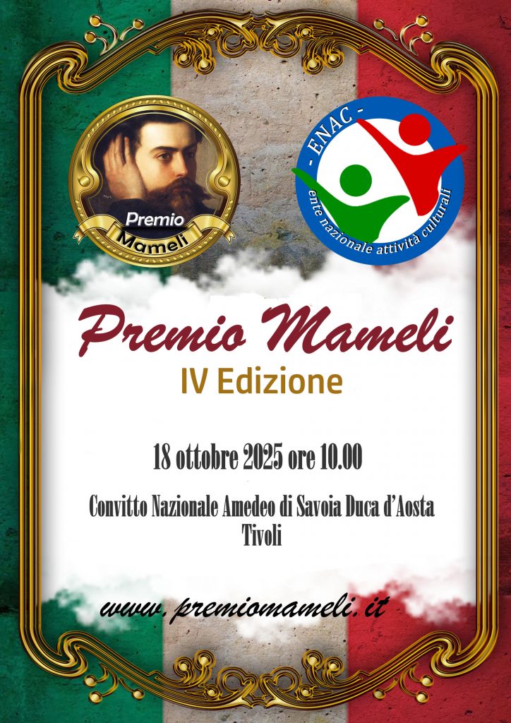 Si svolgerà nella città di Forlì, mercoledì 4 Dicembre, organizzata da ENAC – Ente Nazionale Attività Culturali e dal Comitato ENAC Romagna, la cerimonia di premiazione dei vincitori del Premio Mameli giunto ormai alla terza edizione….